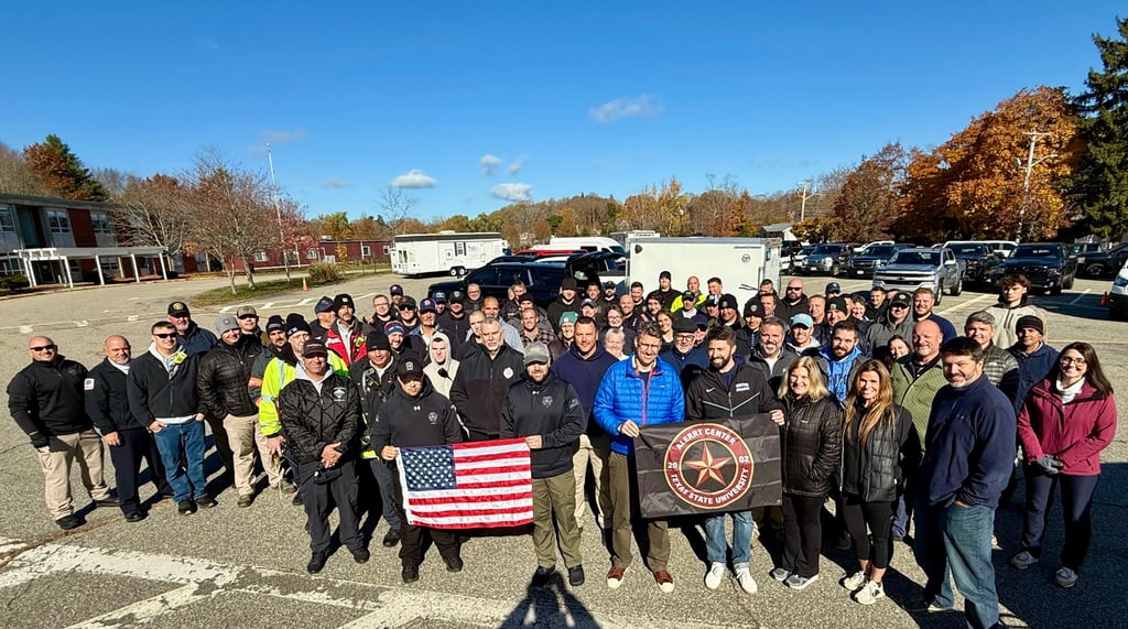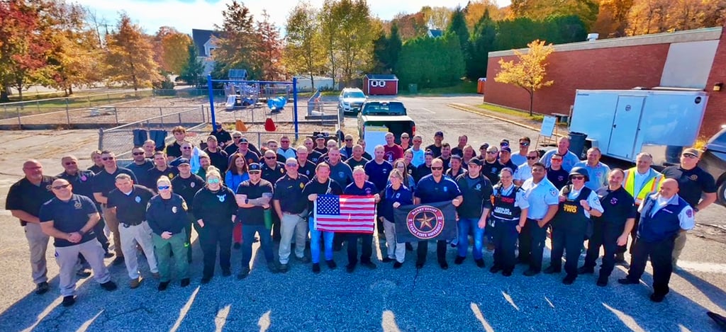 First responders, educators and town officials from multiple communities stand together after undergoing Active Shooter/Hostile Event Response training over the past two months. (Courtesy Merrimac Police Department)