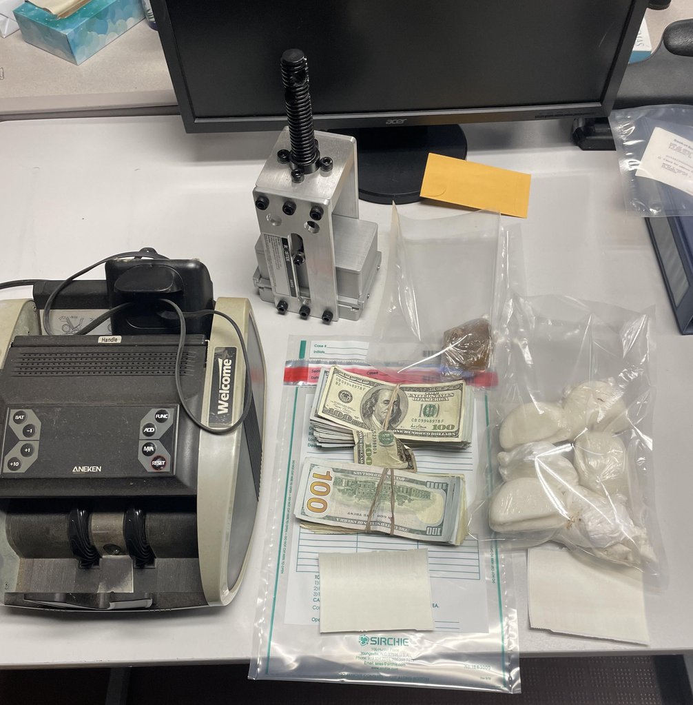 The search warrant led to the discovery of over 600 grams of suspected cocaine, over 80 grams of suspected fentanyl, more than $16,000 in cash, a money counter and a drug press.