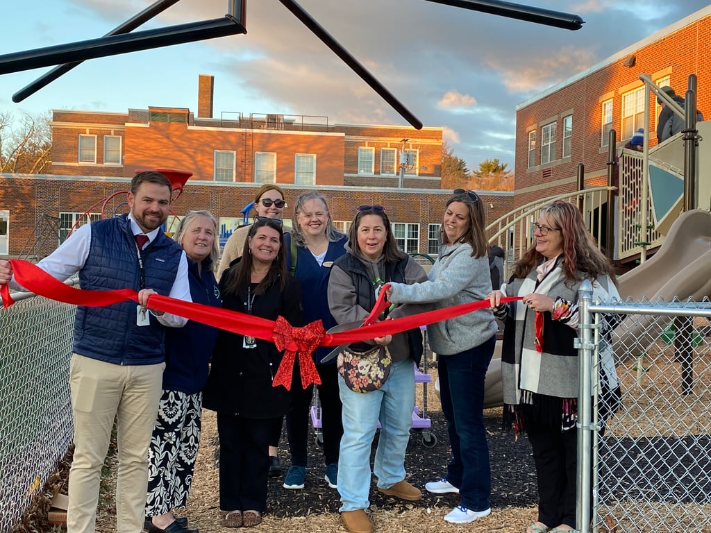 District administrators and Centre School students, faculty and staff gathered at the playground on Tuesday, Nov. 12 for a special ribbon-cutting ceremony to celebrate the completion of the new playground.