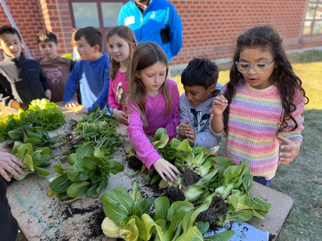 Second and third-graders at Burke-Memorial Elementary School celebrated Harvest Day on Monday, Nov. 18, 2024, assembling and selling crops they cultivated in campus garden beds as part of a partnership with Medway Community Farm. (Photo courtesy Medway Public Schools)