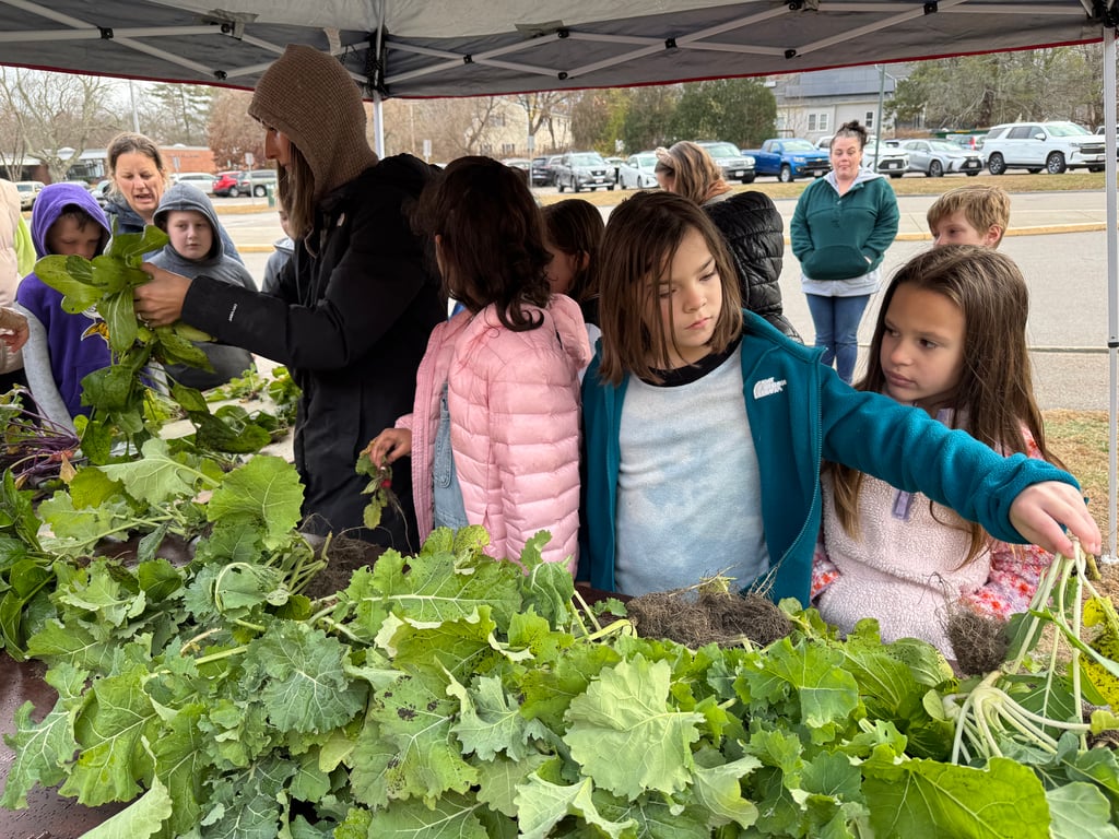Parents were invited to shop at a volunteer-run farmstand at the school. Students sold bunches of vegetables, including radishes, lettuce, bok choy, kohlrabi, and kale, that they had been tending in raised garden beds outside the school since first planting seeds in mid-September. The event was held in partnership with Medway Community Farm.