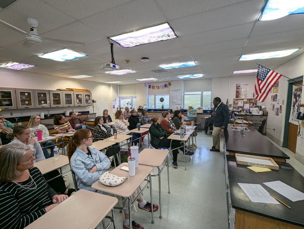In a role reversal, Lenox administrators, faculty and staff sat at the desks within LMMHS classrooms to focus on improving their strategies for promoting academic excellence and student well-being.