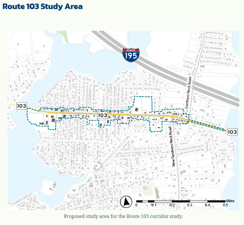“We are looking forward to hearing from area residents and businesses about proposed changes and improvements along the Route 103 Corridor,” said Town Administrator Aronstein. “Before any decisions are made, we are looking to better inform our actions with public input from those directly impacted. I hope folks attend the workshop to weigh in on what they want in their community and their neighborhood.”