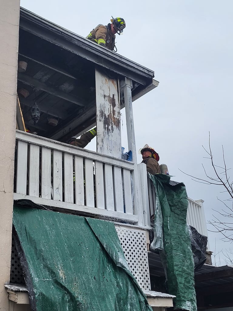 Upon arrival, crews observed smoke and fire coming from the second-floor porch. First-arriving companies, with assistance from Ludlow Police, quickly determined that occupants were out of the building before they arrived.