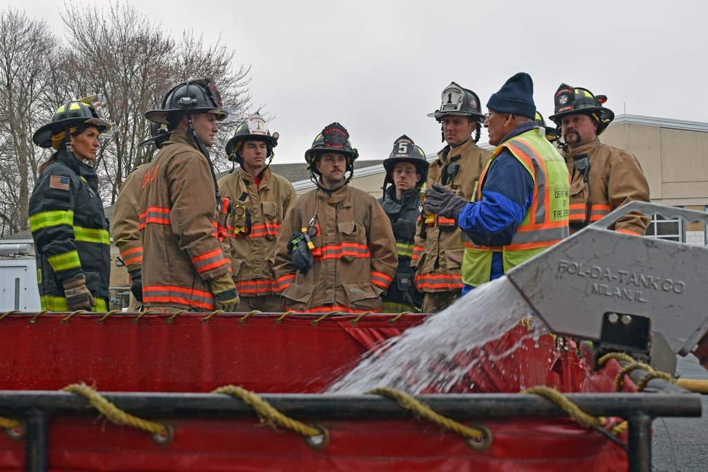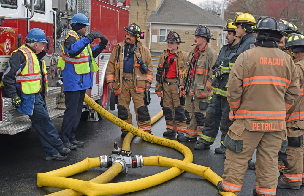 “Hands-on training with pumps and hydraulics — actually flowing water — gives firefighters the opportunity to fine-tune their skills and build essential muscle memory,” said Chief Cunha. “DFS set up stations focused on troubleshooting, drafting, and relay pumping, giving us a well-rounded training experience. Having DFS come to Dracut to conduct this training not only helps our firefighters maintain those skills, but it also gives us the opportunity to train alongside our mutual aid partners from neighboring towns. These joint trainings strengthen our interdepartmental relationships, ensuring that when we respond together on an emergency scene, we do so seamlessly and effectively.”