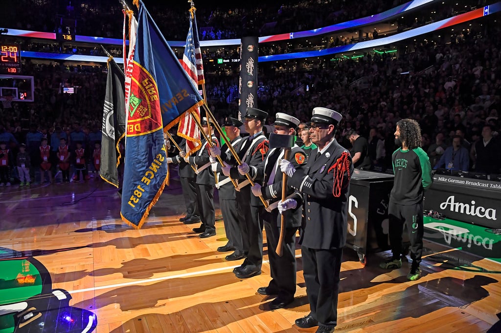 Gloucester Fire Department Honor Guard Presents the Colors at Boston Celtics Game