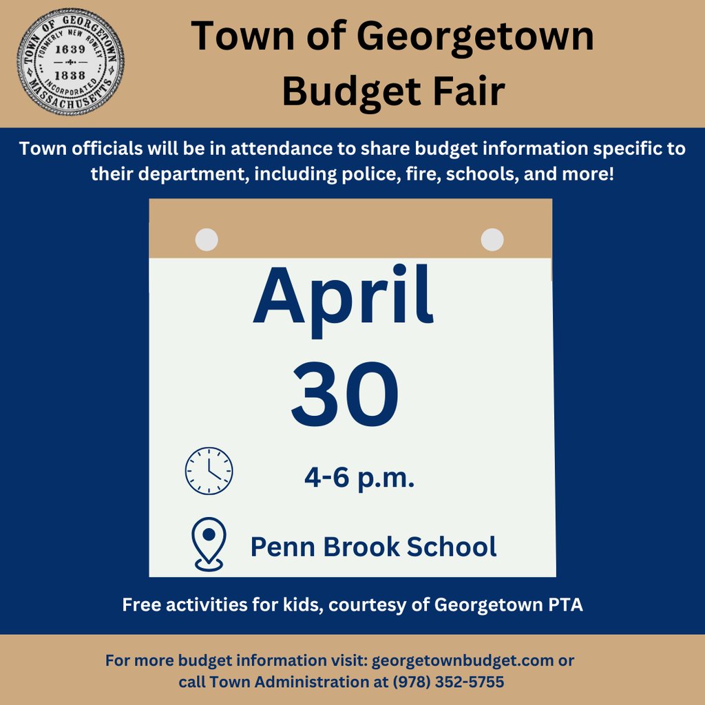 GEORGETOWN – The Town of Georgetown is pleased to share that the town will be hosting the second annual budget fair, allowing residents to me with and ask questions of individual department heads.