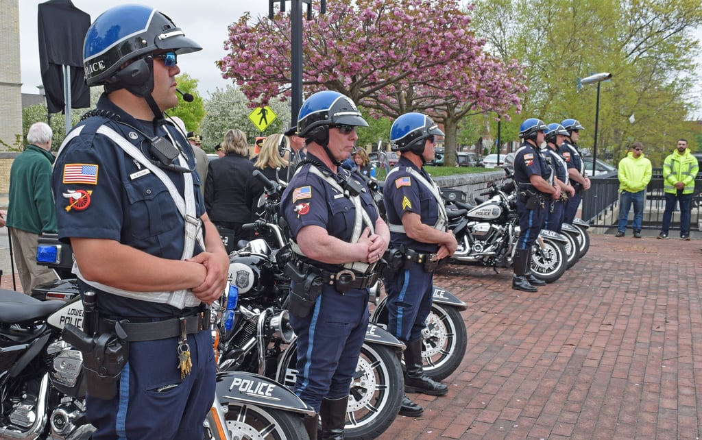 Capt. David Peaslee, who helped organize the ceremony, said Hero Signs such as the one installed for Officer Winn will be installed at two other locations in the city as well, with each sign being dedicated on the anniversary of the officer’s death. Last month, a sign at Perry and Alton streets was dedicated to Officer George F.A. Pearsall.