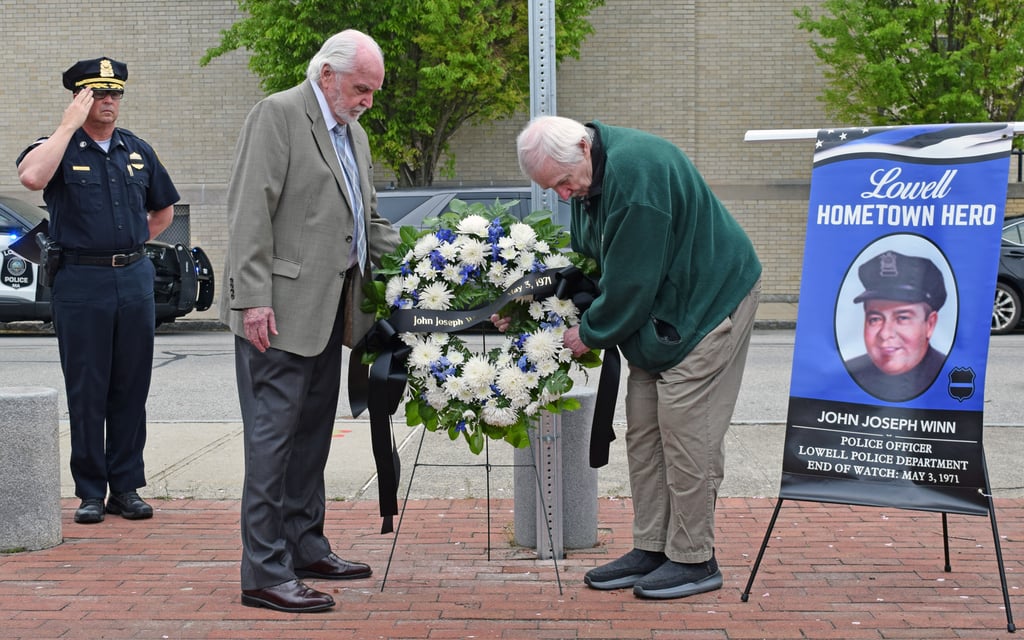 LOWELL — The Lowell Police Department was joined by family members on Friday to dedicate a memorial Hero Sign to Officer John Joseph Winn, who gave his life in the line of duty in 1971.