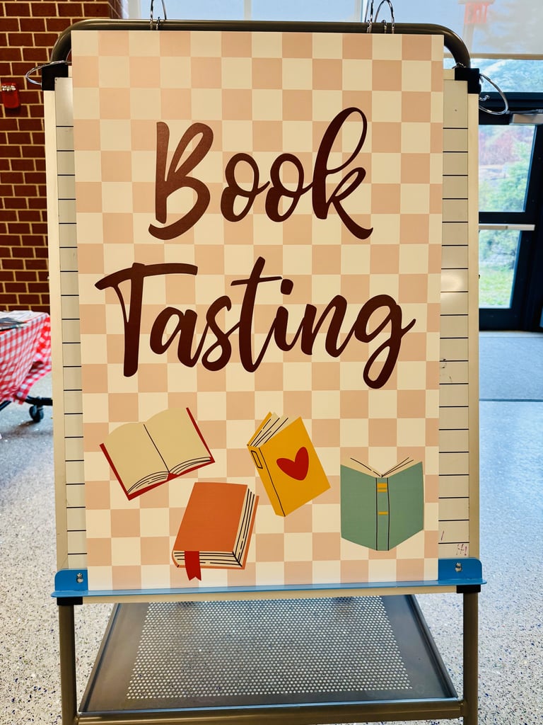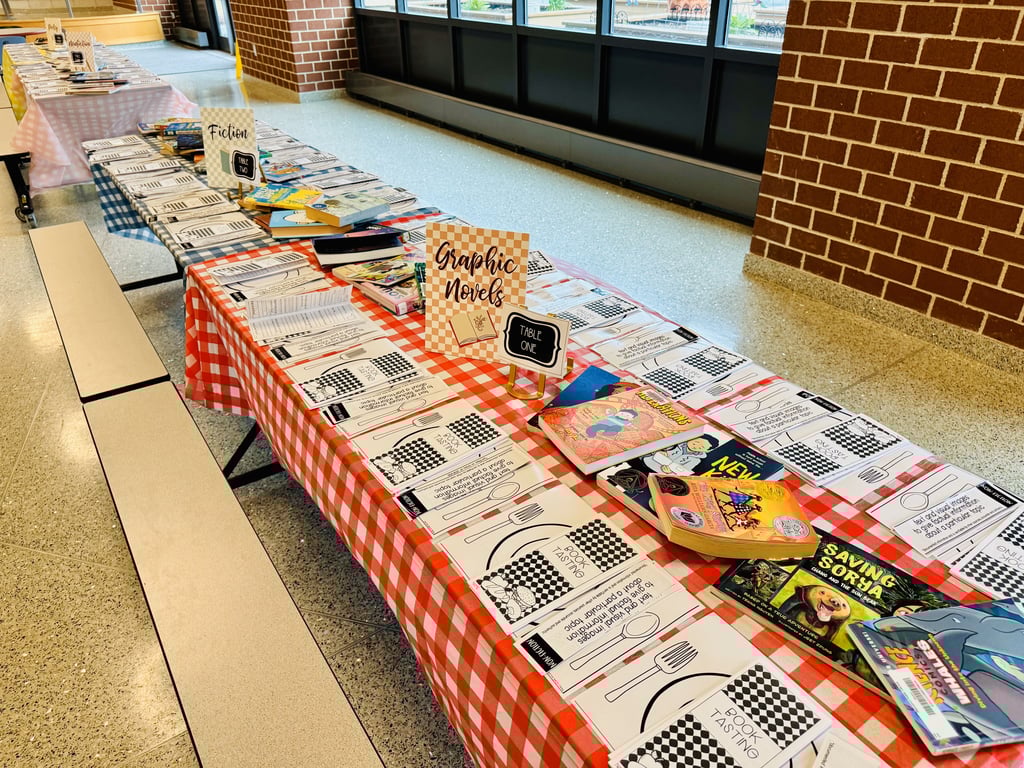 “When students arrived, they found which table number they were to be seated at first,” Bergamini said. “On their ‘placemat,’ they each had a brochure that had a spot to fill in their information for the book tasting. A timer was set and students selected a book, looked the book over, read a couple of pages and then completed the information in the brochure.”