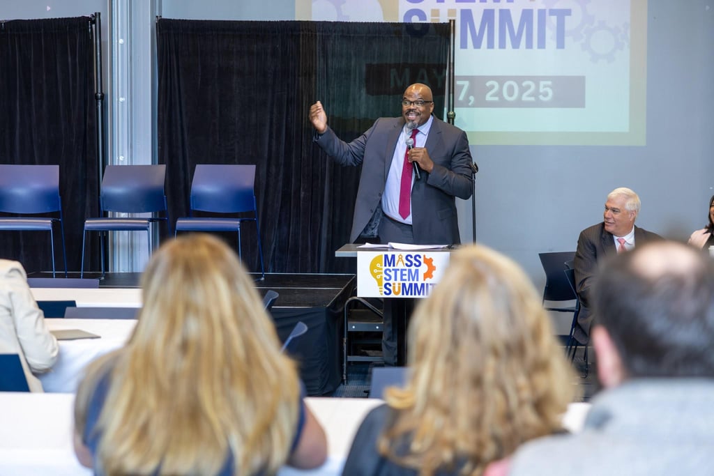 Massachusetts Education Secretary Dr. Patrick Tutwiler addressed educators gathered at the 2025 STEM Summit on Wednesday. (Photo Courtesy Franklin Public Schools)