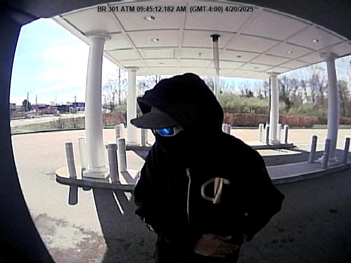 Surveillance video shows the suspect who used the credit card stolen from a Stoughton business at an ATM in East Providence, Rhode Island, on April 20. (Photo Courtesy Stoughton Police Department)