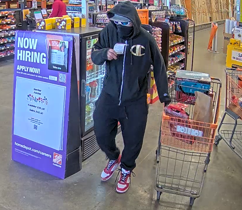 Surveillance video shows the suspect who used the credit card stolen from a Stoughton business at a Seekonk store on April 20. (Photo Courtesy Stoughton Police Department)