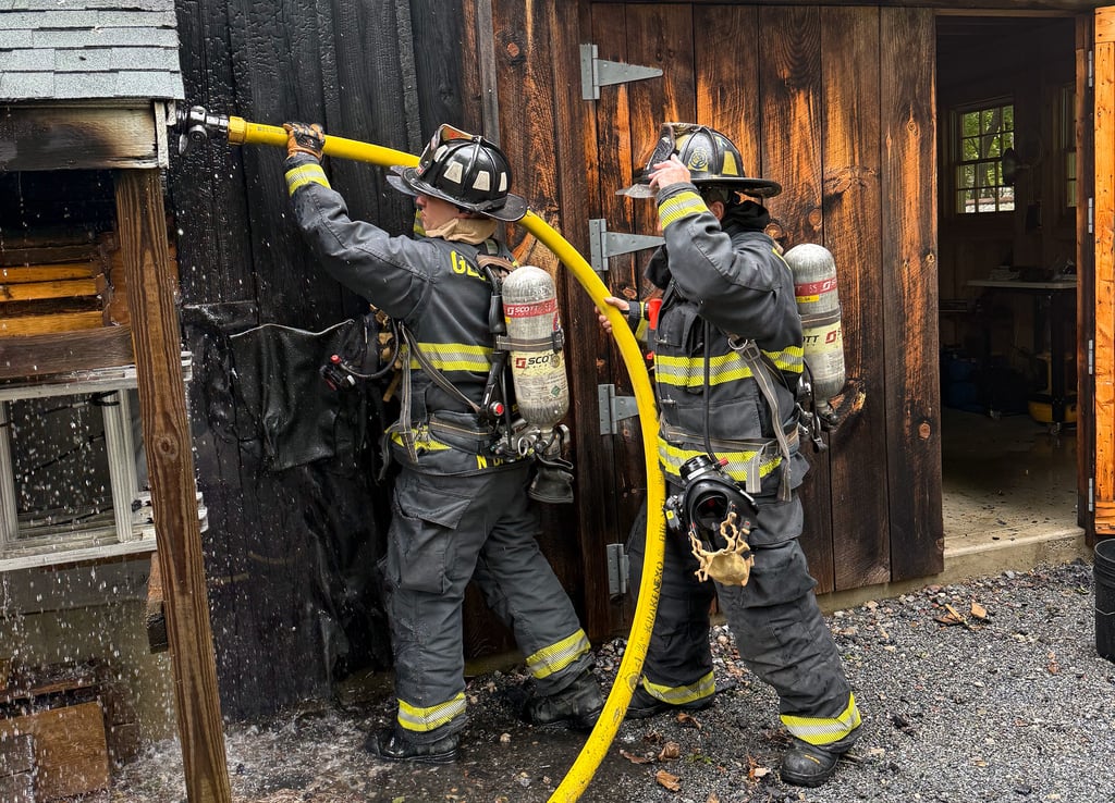 Gloucester Firefighters extinguish a fire in a detached garage at 102 Mt. Pleasant Ave., on Tuesday afternoon. (Photo Courtesy Gloucester Fire Department)