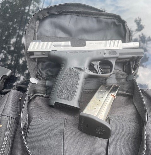 During a search of a fanny pack the suspect was wearing, officers located a 9mm Smith & Wesson handgun with a fully loaded 15-round magazine. Officers determined that the suspect was a 15-YEAR-OLD MALE JUVENILE.