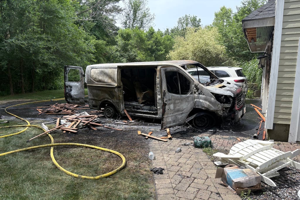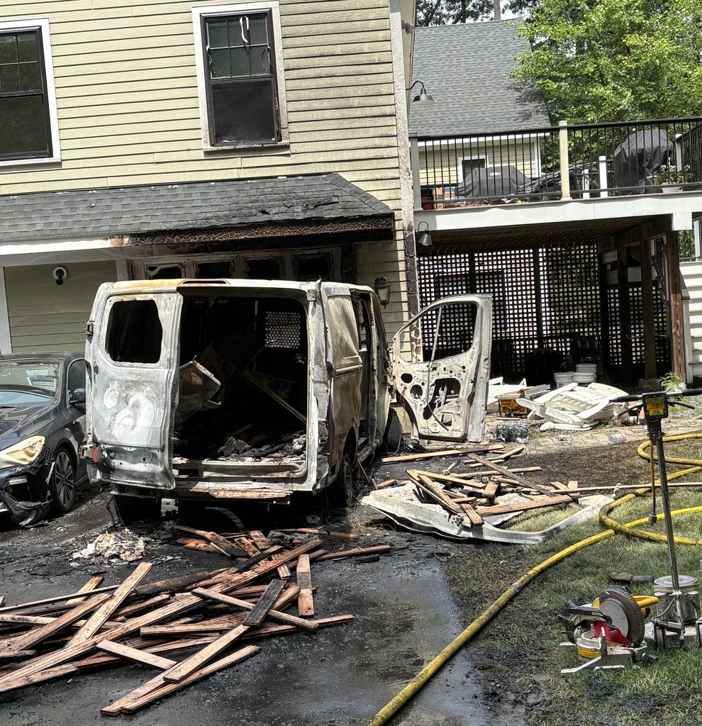 On Saturday, July 5, at 10:39 a.m., the Sudbury Fire Department was notified of a vehicle fire at 220 Maynard Road. While companies were en route to the scene, they were updated by dispatch that a van was on fire in the home’s driveway near the home.