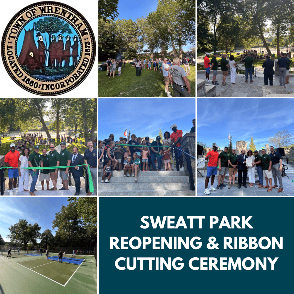 WRENTHAM — The Wrentham Select Board and Town Manager Michael King are pleased to announce that the Town of Wrentham celebrated the grand reopening of Sweatt Park with a ribbon-cutting ceremony held on Thursday, July 24.