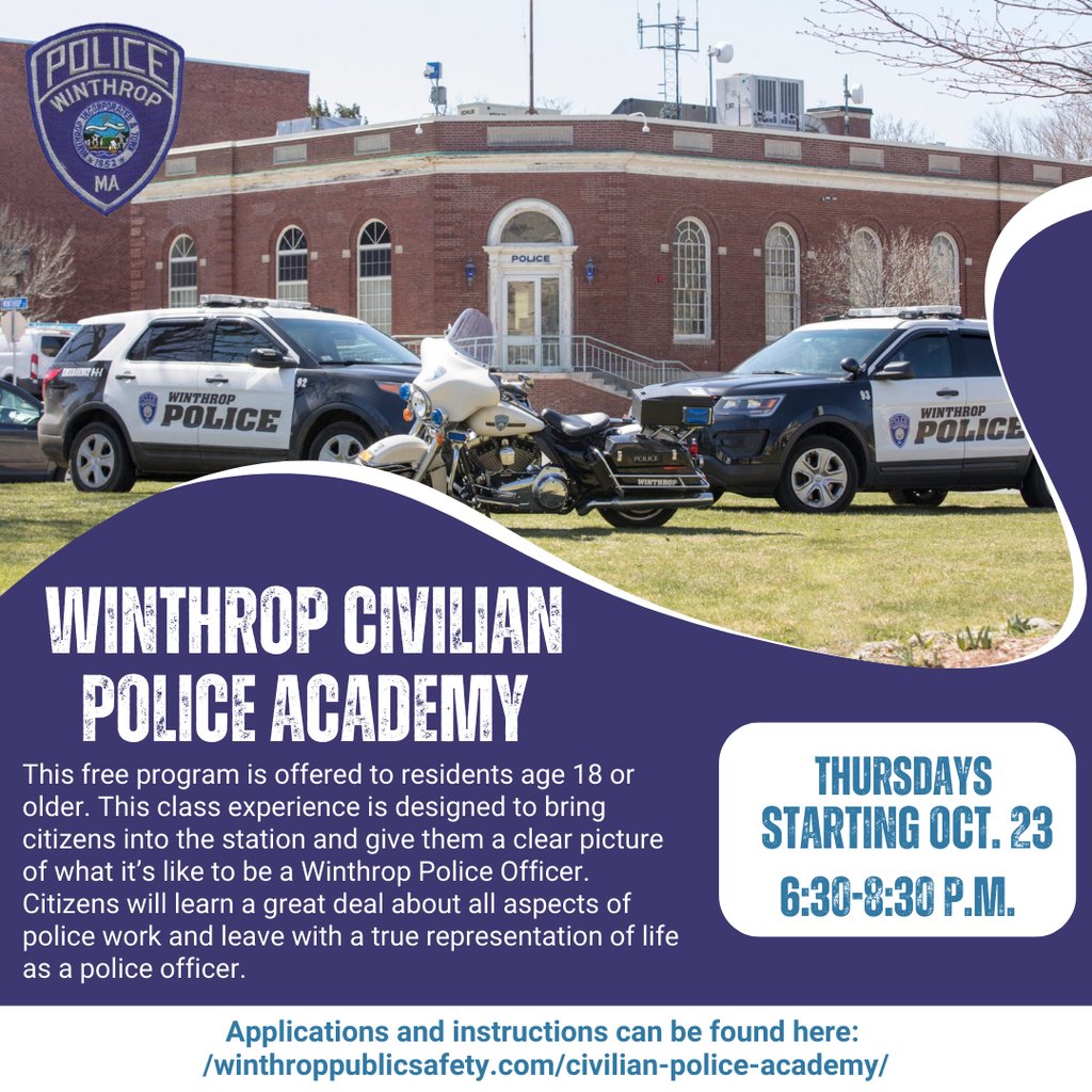 WINTHROP — Police Chief John Goodwin is pleased to share that the Winthrop Police Department is now accepting applications for the 2025 Annual Civilian Police Academy.