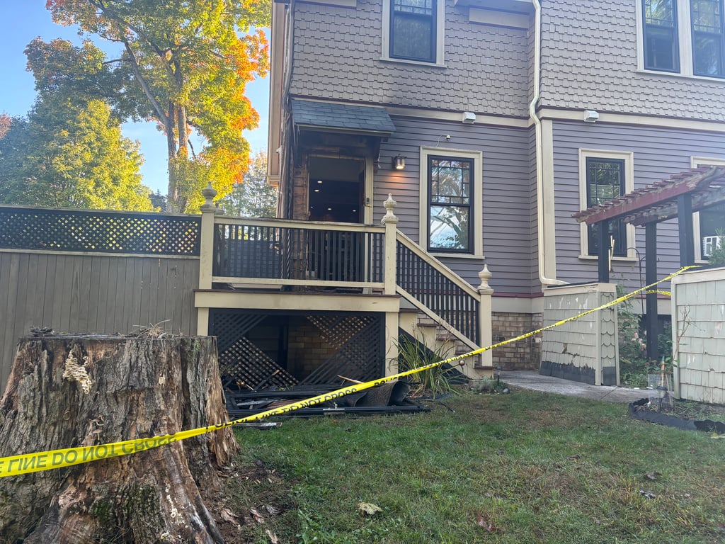 Attleboro firefighters responded to a fire that burned the back deck of a three-story home early Saturday morning. (Photo Courtesy Attleboro Fire Department)