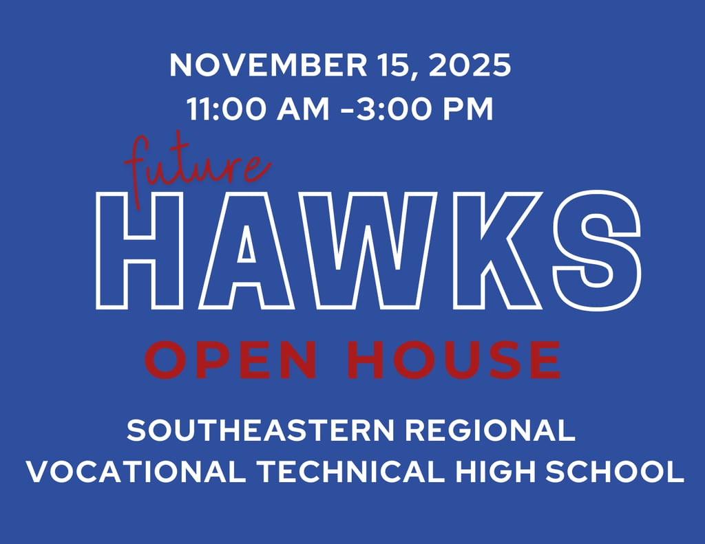 Southeastern Regional Vocational Technical High School will host a Student and Family Open House for eighth graders to explore the school’s state-of-the-art vocational programs, learn about after-school athletics and activities, and meet the school’s teachers and current students.