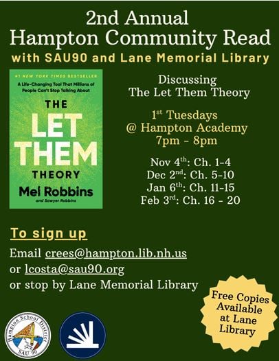 Those interested are asked to register by contacting Dr. Costa at lcosta@sau90.org or Community Experience Librarian Cameron Rees at crees@hampton.lib.nh.us.