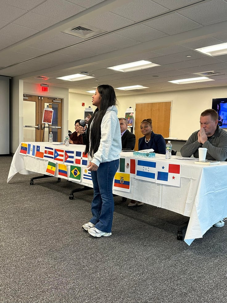 Honored students presented their work to panelists including Chelsea Public Schools Superintendent Dr. Almi Abeyta, DESE Management Consultant Juan Rodriguez, Boston Public Schools Chief of Family and Community Engagement Magaly Sanchez, and DESE College and Career Readiness Specialist Nyal Fuentes.