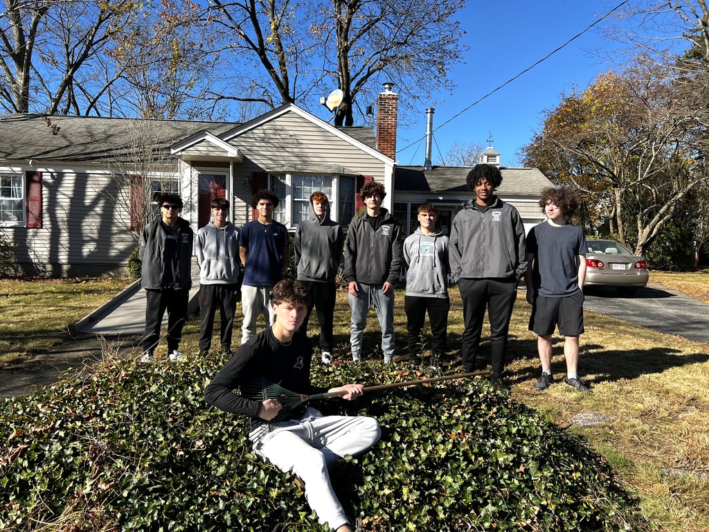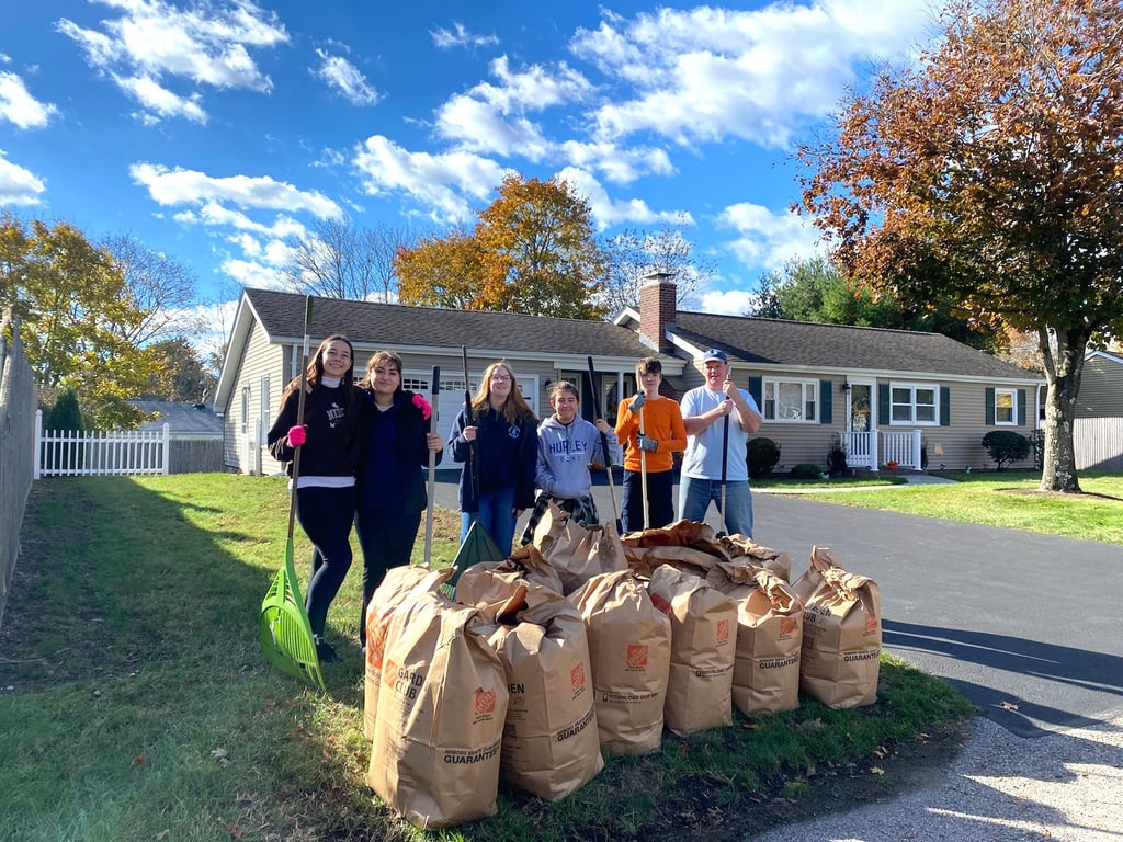A group of Seekonk High School students volunteered to rake the leaves for a U.S. Navy veteran who lives in the community during the Seekonk Veterans Community Leaf Rake event held in 2022. (Photo Courtesy Seekonk Public Schools)