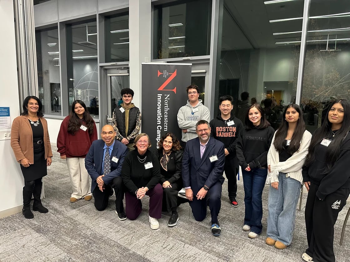 Burlington High School students visited Northeastern University’s Innovation Campus in Burlington, on Nov. 12 to attend “Catalyzing Innovation at the Intersection of Life Sciences and AI in the Region,” a fireside chat presented in collaboration with the Northeastern University Innovation Center (NEUIC), the Burlington Area Chamber of Commerce, CallaBio Solutions, and the Massachusetts Life Sciences Center as part of their quarterly Fireside Chat Series to discuss the intersection of life sciences and AI.