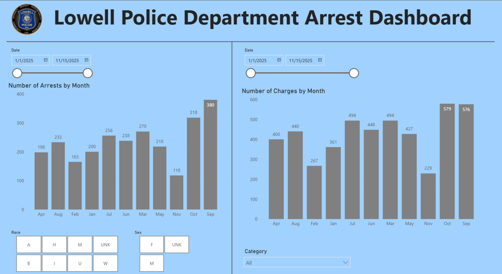 The new interactive dashboard is part of LowellPolice.org. It provides access to data from incident reports collected by the department, and is made available in the interest of transparency.