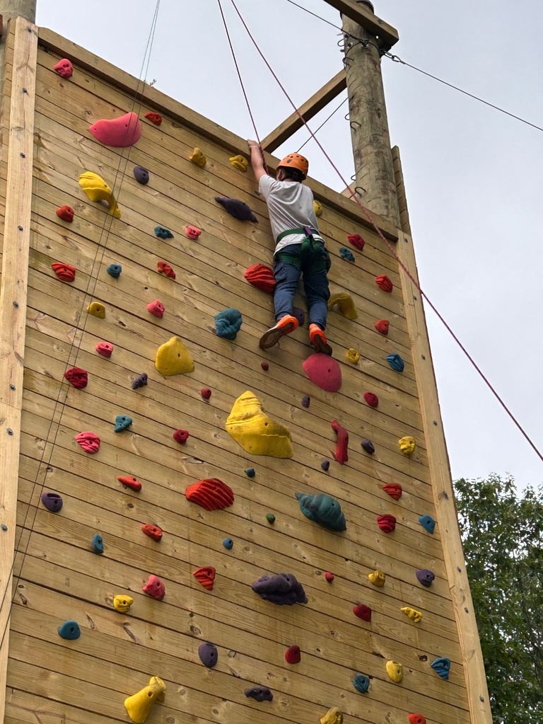 A student reaches the top of the rock climbing wall at Hale Education. (Photo Courtesy Medfield Public Schools)