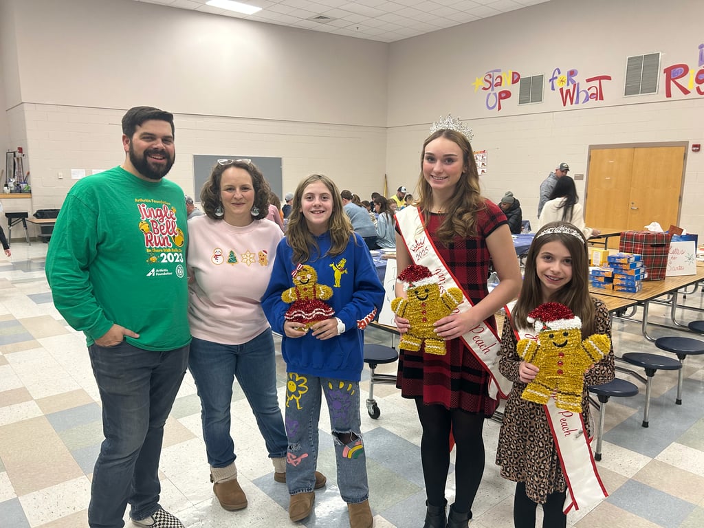 Charlotte Mason, a 10-year-old Albert F. Ford Middle School student, has been helping to raise money for awareness and to find a cure for Juvenile Idiopathic Arthritis. She recently hosted a Gingerbread House Contest and posed for a photo with parents and Hannah Hergenrather, Director of Development for The Arthritis Foundation, at left. (Photo Courtesy Acushnet Public Schools)