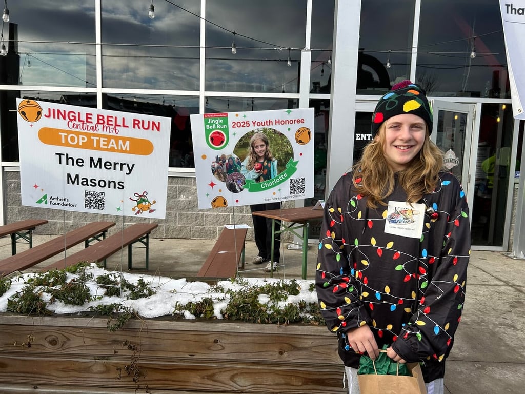 “One thing I want everyone to know is that it’s not easy to have arthritis,” Charlotte told the Jingle Run crowd. “Doctor’s appointments can make you miss school or stop you from playing at recess or being active, and pain can often cause me to lose focus. But that doesn’t mean it’s impossible. My arthritis has ups, and downs, good days, and bad days. So just enjoy the good ones! You’ll overcome the bad.”