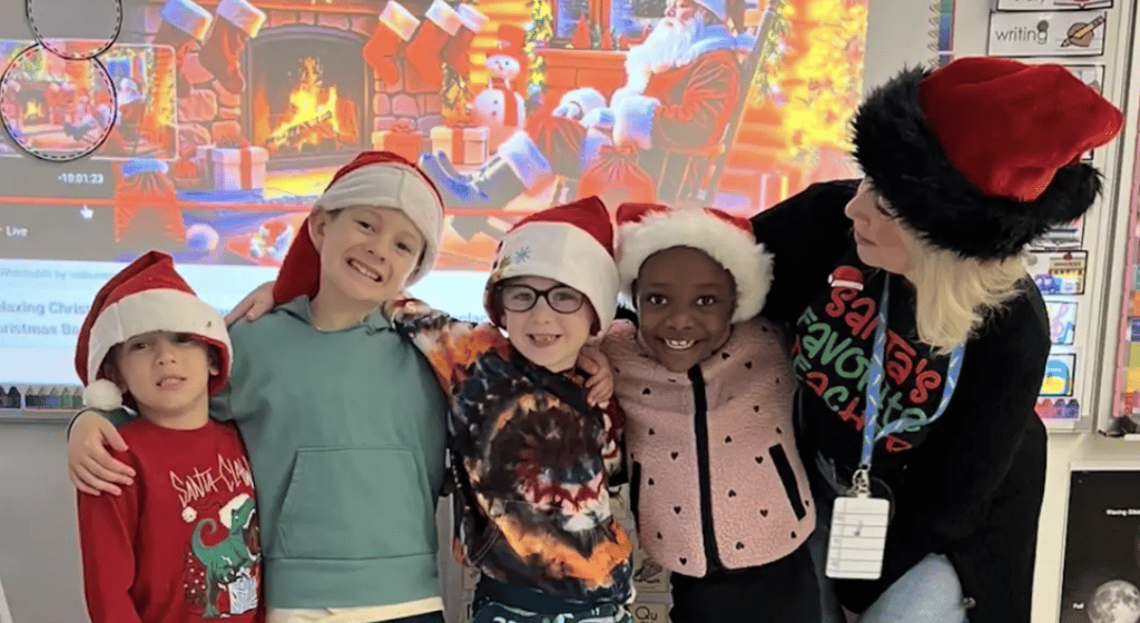 “My favorite memory of Colene Gibbons is seeing her as the joyful spirit of the holiday season, truly the only person who loves Christmas more than I do,” said retired Woburn Public Schools teacher Jessica Auferio. “Each year she creates a full calendar of December fun, culminating in her beloved Polar Express Day, complete with themed decorations, prizes, a reading of the book, the movie, and her famous hot chocolate with all the toppings. When I taught third grade, she would walk up to the top floor in her festive red apron just to deliver a warm cup to me, a small act that always brightened my day. This tradition has lasted nearly as long as she has taught first grade, and to me there is no teacher more magical. Beyond the holidays, Colene has a heart of gold — she mentors colleagues, supports everyone, makes handcrafted decorations for school events, plans engaging After the Bell classes, and even hand-delivers gifts to families in need during Christmas.”