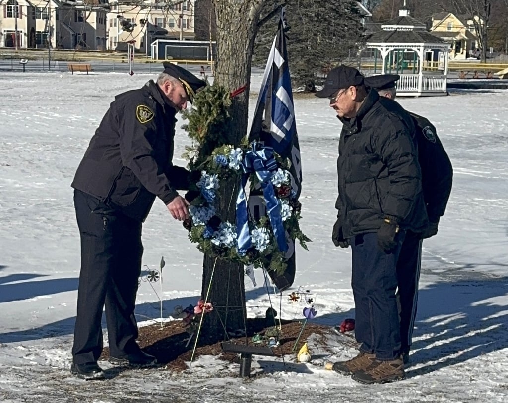 Wilmington Police held a recognition ceremony on Friday at Rotary Park, where a tree now grows in Collier’s honor, just above a memorial plaque. Town Manager Eric Slagle and Veterans Agent Louis Cimaglia both spoke, as did Chief Brian Pupa and former Select Board member Greg Bendel. Several Select Board members were in attendance.