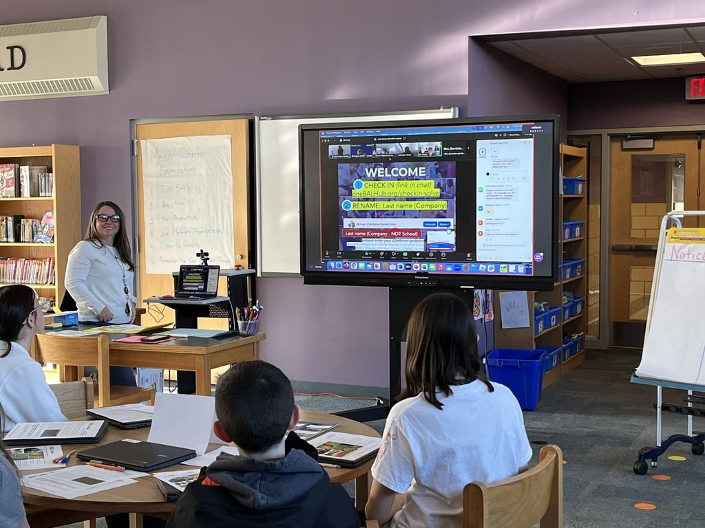 Students at Rochester Memorial School participated in a virtual conference at the outset of the Student Solve challenge. (Photo Courtesy Old Rochester Regional School District and MA Superintendency Union #55)
