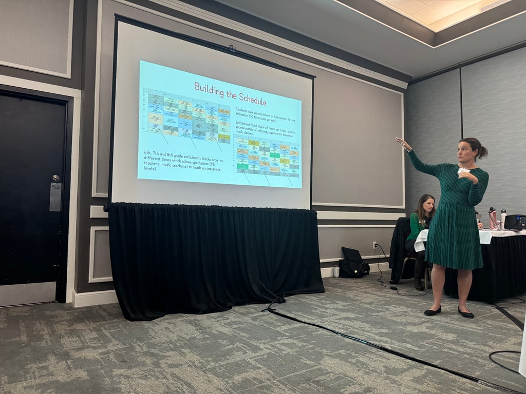 Concord Middle School Assistant Principal Olive Bradford discusses the master schedule the school adopted that included a dedicated enrichment and intervention block. (Photo Courtesy Concord Public Schools)