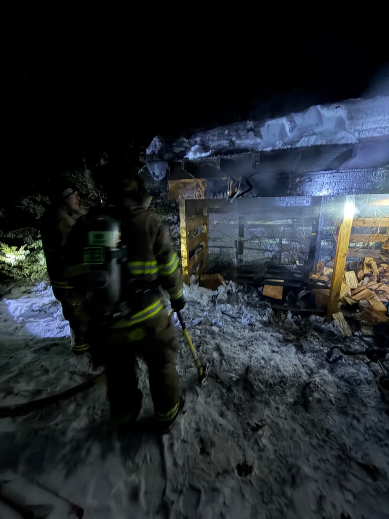 Acton firefighters extinguished a shed fire Saturday night as temperatures hovered in the single digits. (Photo Courtesy Acton Fire Department)