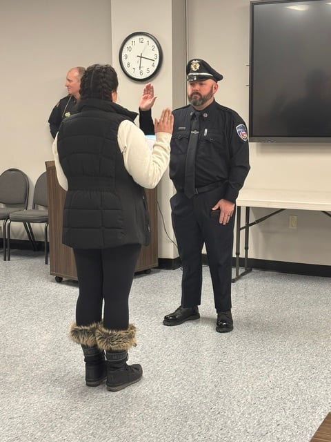 Chief Gilmore congratulated Officer Giguere and Officer Green, welcoming them to the Blackstone Police Department.