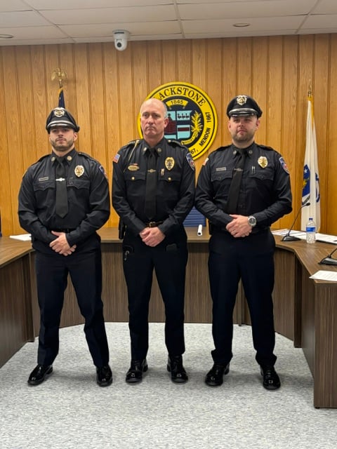 On Tuesday, Jan. 27, Chief Gilmore presented Officers Eric Lawler and Brendan Fitzpatrick with letters of commendation at a Blackstone Board of Selectmen meeting.