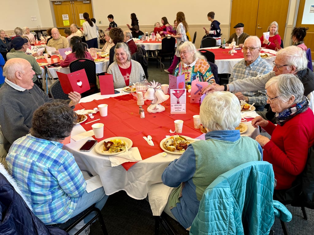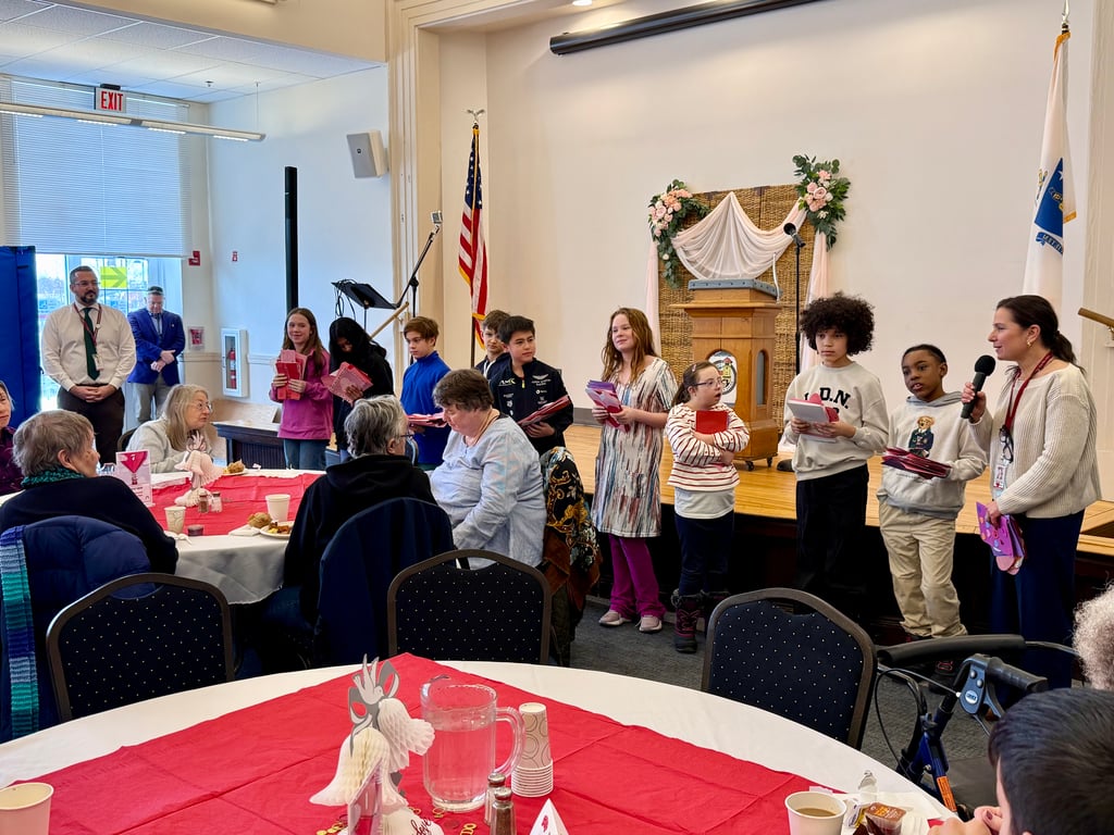 As the students handed them out during the Council on Aging’s Valentine’s Jazz Brunch, seniors paused to read the messages. Some smiled quietly. Some held the cards close to their chests. A few reached out for hugs.