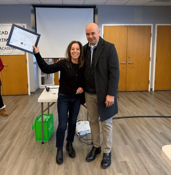 2.0 Academy graduate Anne Tassel receiving her certificate of completion from Chief Dennis King. (Photo Courtesy Marblehead Police Department)
