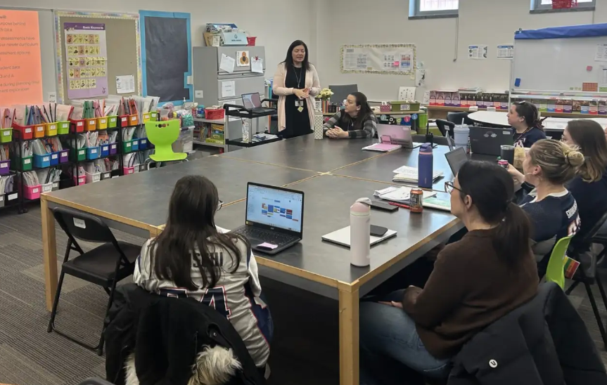 Emily Shaw leads the Reveal Math support sessions during our data meetings at Goodyear, helping teams dig into planning and turn insights into intentional instructional moves. Her guidance keeps conversations focused, collaborative, and rooted in what students need most. (Photo Courtesy Woburn Public Schools)