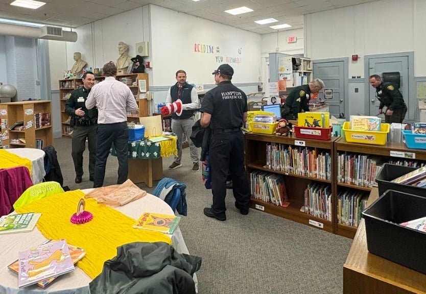 Guests included police officers, firefighters, local business owners, and district administrators, among other community members who volunteered to support the school’s literacy efforts.