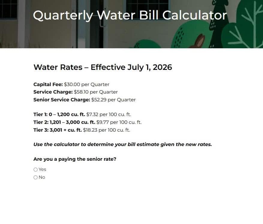 Residents can expect to see increases to their quarterly water bill effective July 1, 2026. Sewer rates will not be affected.