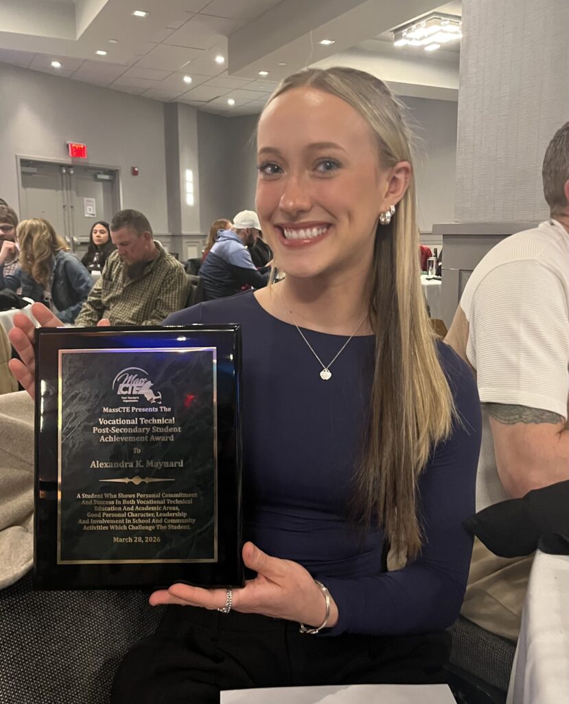 Maynard, of Mansfield, who is graduating this year from a 9-month program, excels in the classroom, serves as a peer tutor, and contributes to STI’s Institutional Advisory Board. She received her award on Saturday, March 28, at the Mass CTE Awards Ceremony held at the Renaissance Hotel in Foxborough.