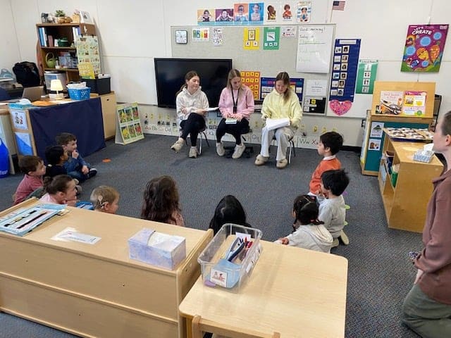 On Thursday, April 2, students from Melanie Pavao’s class visited both ECDC locations. The seniors read their stories to the young learners, who listened with curiosity and excitement to tales about bravery, sharing feelings, and going on adventures.