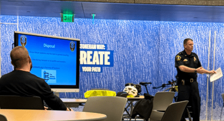 Stoneham Police Lt. David Thistle speaks to participants during the community safety forum on bicycle and e-bike safety. (Photo courtesy of Stoneham Police)