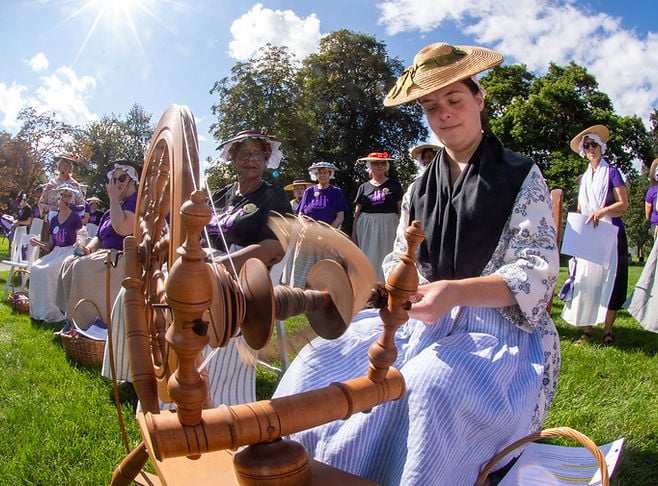 The reenactment of Anna Harrington’s 1769 Spinning Protest, held in Lexington in 2024. (Photo Courtesy…