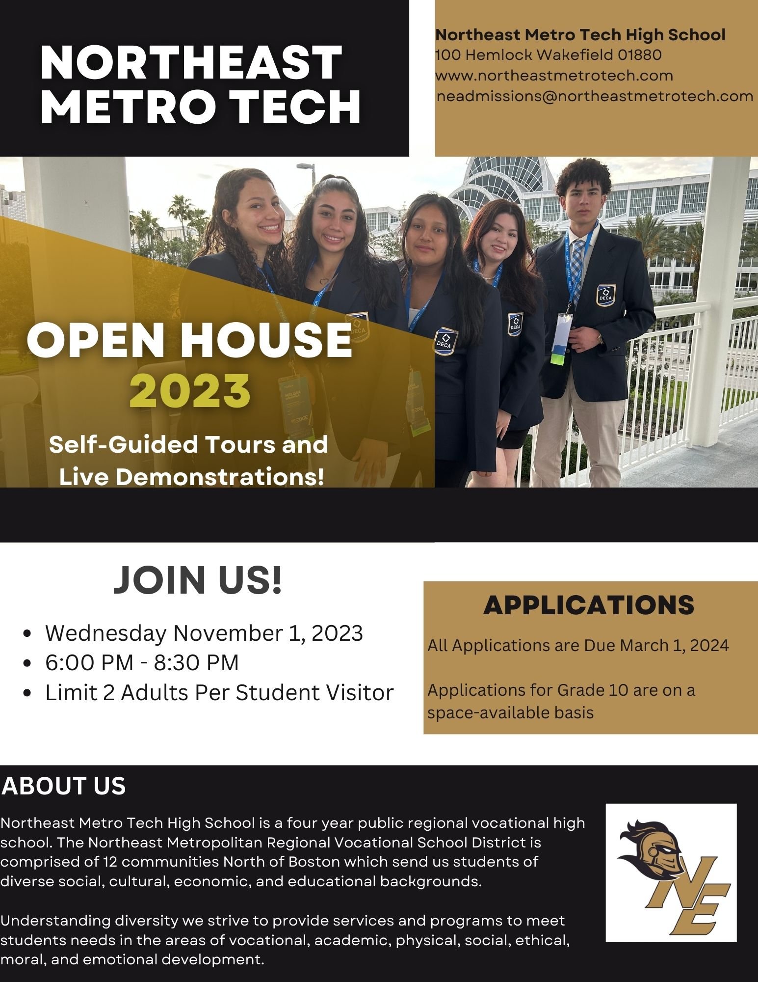 WAKEFIELD — Superintendent David DiBarri is pleased to announce that Northeast Metro Tech is hosting…