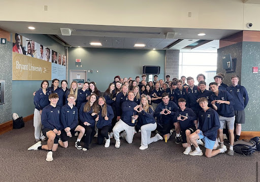 WRENTHAM — Superintendent Rich Drolet, Principal Nicole Bottomley, King Philip DECA Marketing Coordinator James Dow…